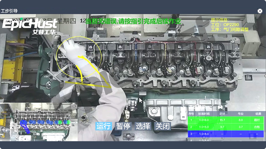 參照標(biāo)準(zhǔn)作業(yè)實(shí)時(shí)引導(dǎo)工人操作,實(shí)時(shí)獲取工人動(dòng)作信息,通過(guò)提示減少錯(cuò)裝漏裝,對(duì)作業(yè)過(guò)程實(shí)時(shí)監(jiān)控預(yù)警,實(shí)現(xiàn)對(duì)操作工人的智能工步引導(dǎo),提高裝配效率和質(zhì)量