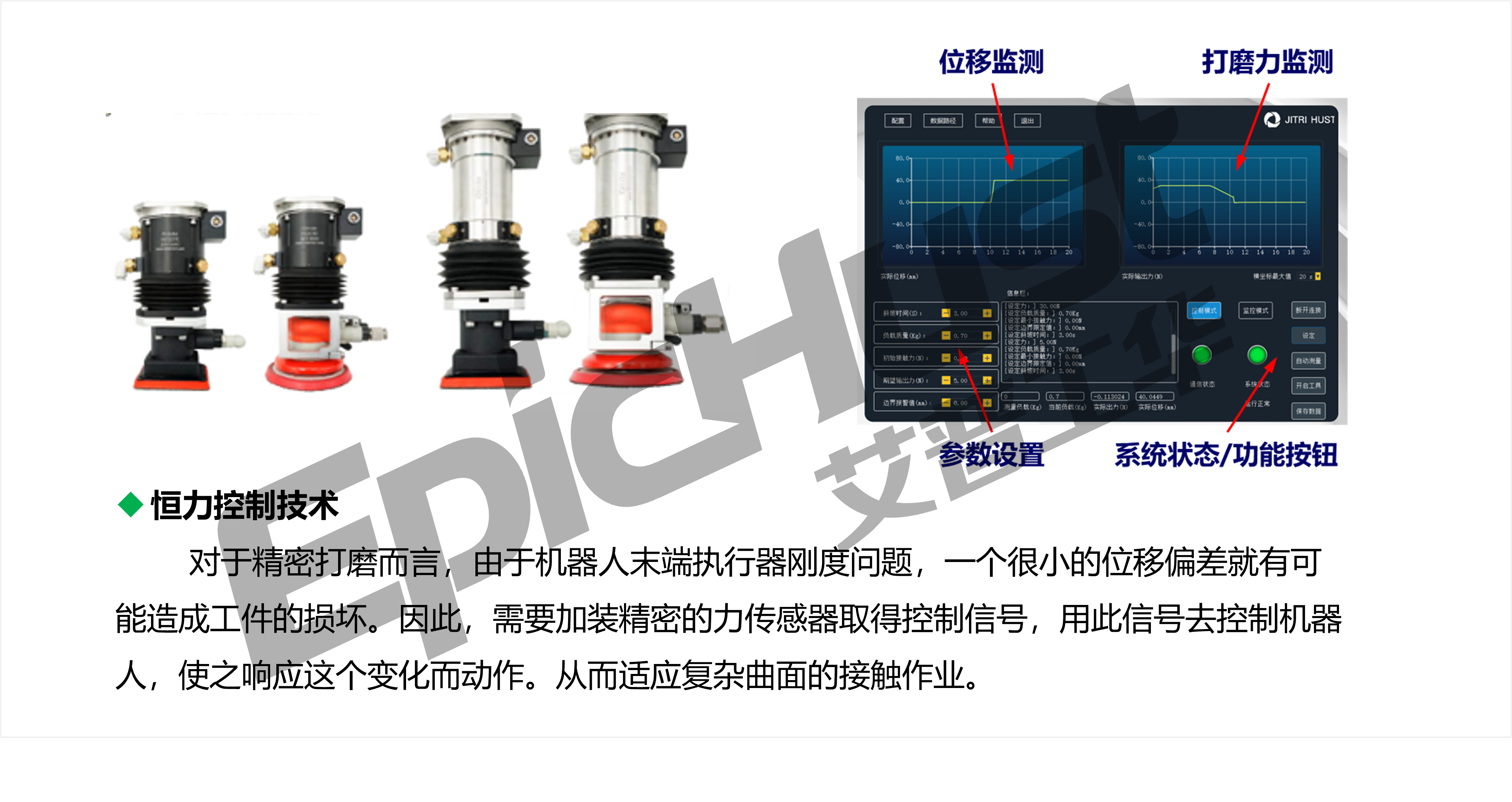適用于多種行業(yè)下,大型工件、磨面精度要求高、形狀復(fù)雜工件的打磨加工。它解決了人工打磨成本高、效率低、質(zhì)量不穩(wěn)定和危害健康等問題。系統(tǒng)由機(jī)器人、恒力打磨套件、集成降噪套件、變位翻轉(zhuǎn)機(jī)等組成。其交付案例眾多,可降低成本、提升效率、穩(wěn)定質(zhì)量并改善環(huán)境