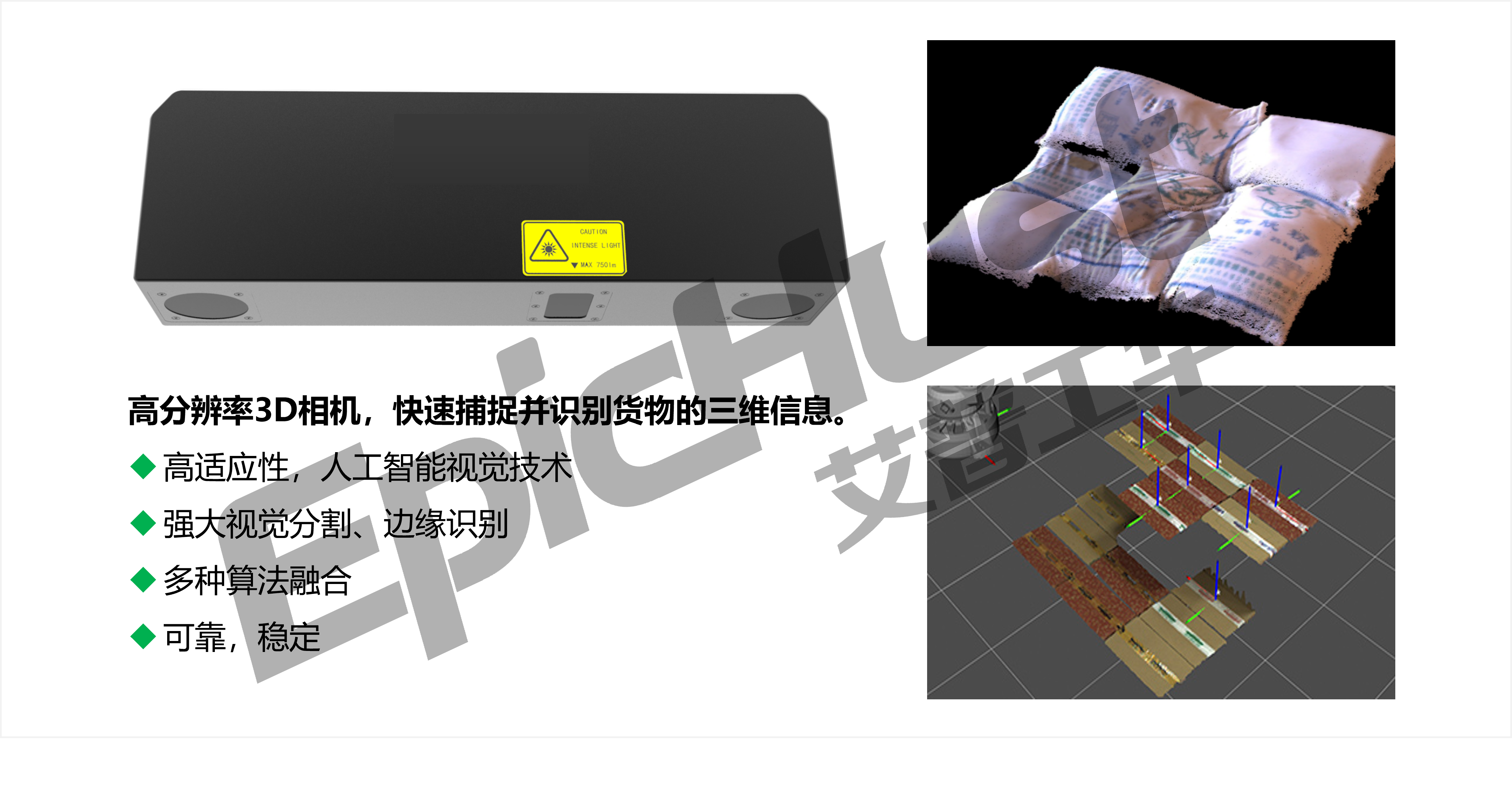 應(yīng)用于物流及生產(chǎn)的拆碼垛環(huán)節(jié)。針對人工搬運風(fēng)險大、負(fù)擔(dān)重、效率低的現(xiàn)狀而研發(fā)。由 3D 視覺相機(jī)、機(jī)械手等組成。3D 相機(jī)分辨率高、適應(yīng)性強,機(jī)械手精度高且可定制。在醫(yī)藥、化工、物流等行業(yè)有成功案例,能提高效率、降低風(fēng)險、減輕負(fù)擔(dān)并穩(wěn)定運行